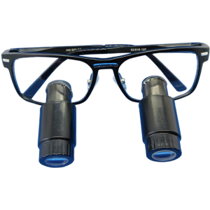 TTL loupes stand for “through the lenses” loupe and are also known as ‘front mounted’ loupe. The optical barrels (oculars/magnifiers) are actually mounted into the lenses of the magnifying glasses, based on the users individual pupillary distance and working distance measurements. TTL loupe are fixed at the steepest angle of declination possible to allow the user to achieve the most ergonomic position possible.